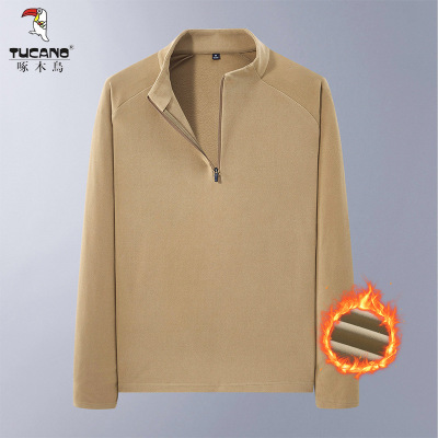 啄木鸟立领双面德绒卫衣男秋冬半拉链加绒加厚大码潮流打底衫上衣
