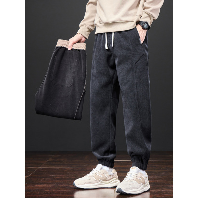 灯芯绒休闲裤秋冬新款加绒加厚哈伦束脚卫裤美式潮牌运动裤子