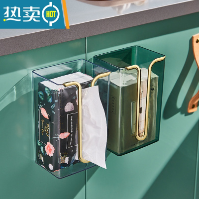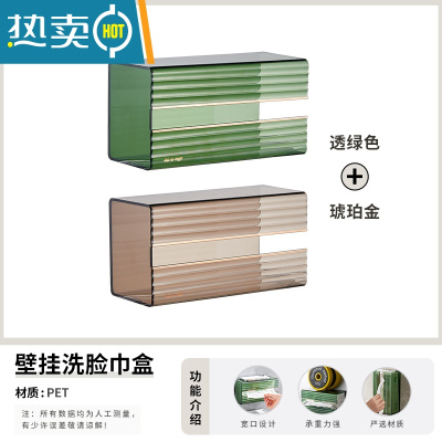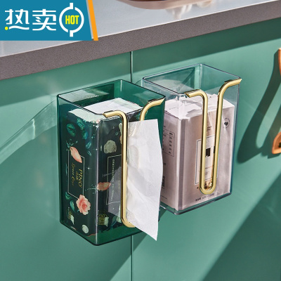 敬平纸巾盒壁挂式抽纸盒子面巾纸洗脸巾收纳厕所卫生间厨房倒挂免打孔 透绿色+琥珀金[轻奢收纳]