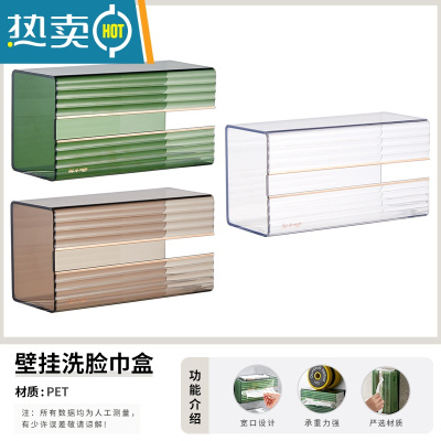 敬平纸巾盒壁挂式抽纸盒子面巾纸洗脸巾收纳厕所卫生间厨房倒挂免打孔 透明白+透绿色+琥珀金[轻奢收纳]