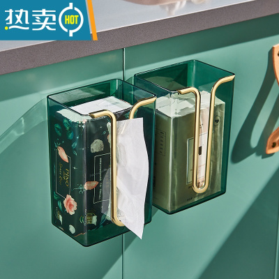 敬平纸巾盒壁挂式抽纸盒子面巾纸洗脸巾收纳厕所卫生间厨房倒挂免打孔 透绿色[轻奢收纳]