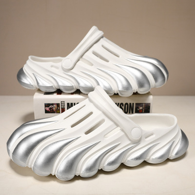 酷炫踩屎感软底洞洞鞋包趾搭扣沙滩凉鞋男士夏季两用凉拖男鞋