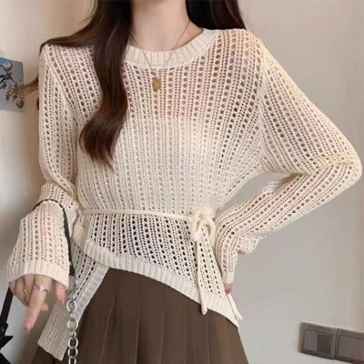 夏季不规则薄款慵懒镂空针织衫风垂感夏季圆领钩花空调罩衫