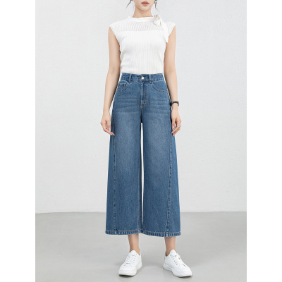 凉感天丝九分阔腿裤年夏季新中高腰宽松牛仔镰刀裤女