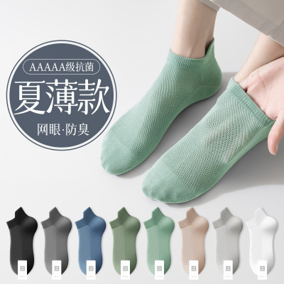 2025春秋款袜子男短袜吸汗纯色男士网眼春夏季男袜提耳船袜