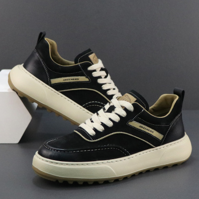 男鞋新款秋季头层牛皮复古潮流英伦透气休闲鞋厚底运动板鞋男