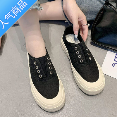 聚范帆布男鞋夏季透气百搭休闲板鞋厚底增高黑色布鞋乞丐潮鞋