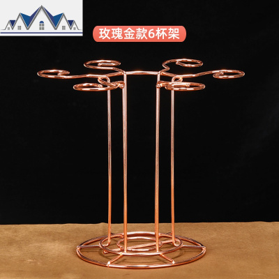 悬挂创意悬挂式六杯八杯红酒杯架倒挂吊架古铜色铁艺酒架时尚壁挂 三维工匠收纳层架