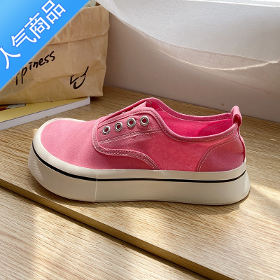 SUNTEK帆布鞋女2023新夏季薄款低帮透气百搭学生一脚蹬糖果色板鞋乐福鞋