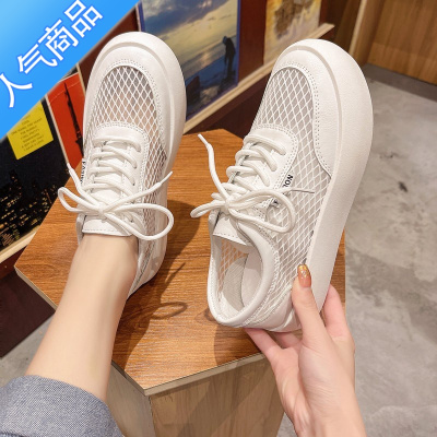 SUNTEK网鞋女夏季透气网面休闲女鞋子2022年新款帆布厚底松糕小白鞋