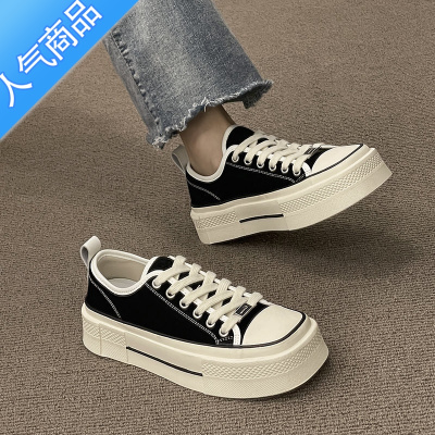 SUNTEK显脚小的小白鞋女厚底2023年夏季新款休闲板鞋复古黑色帆布鞋