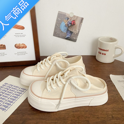 SUNTEK厚底小白鞋女2023夏新款ulzzang百搭半拖帆布鞋大头女鞋ins潮原宿