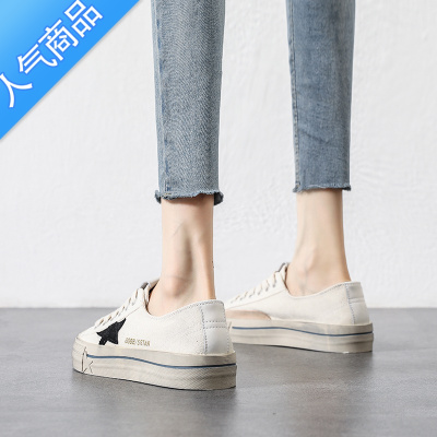 SUNTEK星星做旧脏脏板鞋女夏季薄款软底轻便小白鞋2023新款百搭帆布女鞋