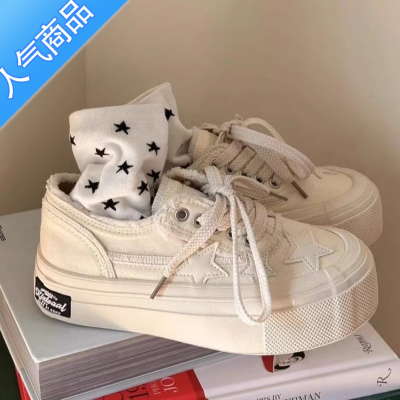 SUNTEK星星小白鞋女ins潮厚底薄款透气小众原创2023夏季新款帆布板鞋子