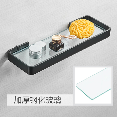 美帮汇免打孔浴室置物架梳妆化妆台架钢化玻璃架单双层镜前架太空铝