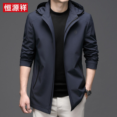 恒源祥冲锋衣男轻商务休闲中年男士外套带帽上衣春秋中长款夹克衫