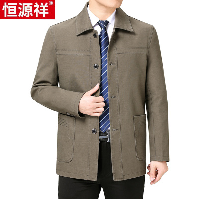 恒源祥外套男春秋季新款中老年男士上衣纯棉翻领爸爸装薄款夹克衫