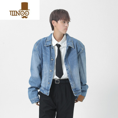 YANXU美式时尚高街痞帅长袖牛仔衫男士韩版潮流小众设计感休闲夹克上衣