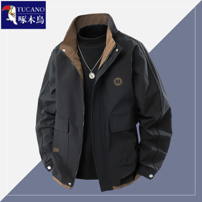 啄木鸟外套男士潮牌春秋季韩版宽松休闲百搭上衣防风立领潮流夹克