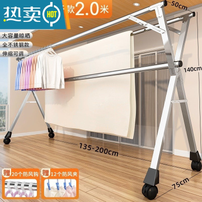 敬平不锈钢晾衣架落地结实可伸缩移动折叠晒被小型阳台双杆式室新 加高升级特粗款2.0?长衣不落地?滑轮更便捷 大