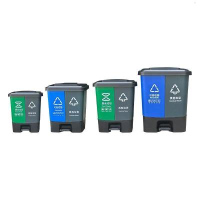匹牧商用户外分类塑料双胞胎垃圾桶蓝灰40L加厚+脚踏单位:个