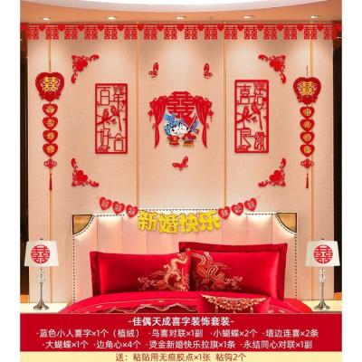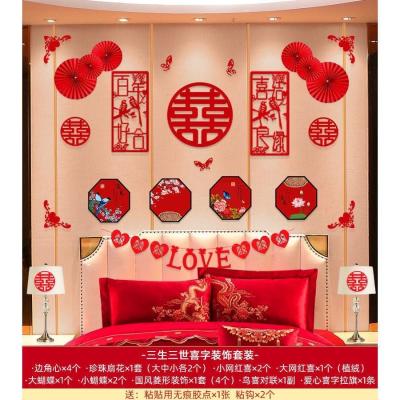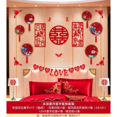 婚房布置套装婚庆结婚用品背景墙小对联客厅卧室立体喜字拉花装饰三生三世HQ
