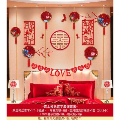 婚房布置套装婚庆结婚用品背景墙小对联客厅卧室立体喜字拉花装饰喜上枝头HQ