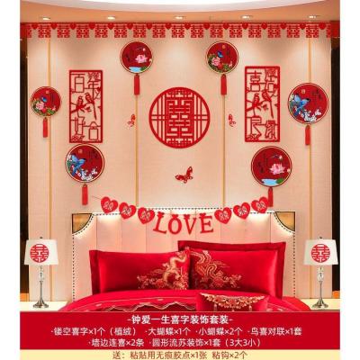 婚房布置套装婚庆结婚用品背景墙小对联客厅卧室立体喜字拉花装饰钟爱一生HQ