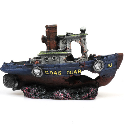 海盗船水族箱造景鱼缸造景装饰船躲避屋摆件船空心树脂船沉船