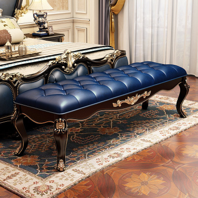 森美人欧式床尾凳黑檀色实木花床边凳卧室床头凳床榻新美式换鞋凳