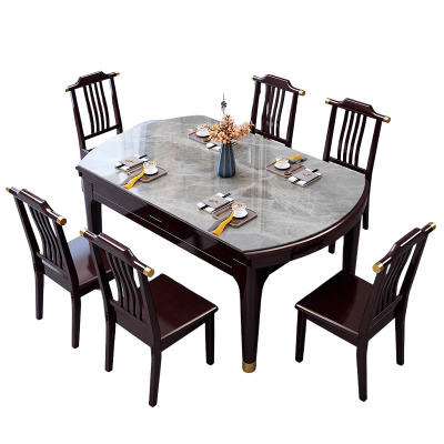 伟樽岩板餐桌可伸缩120*76*75cm+椅子*6套