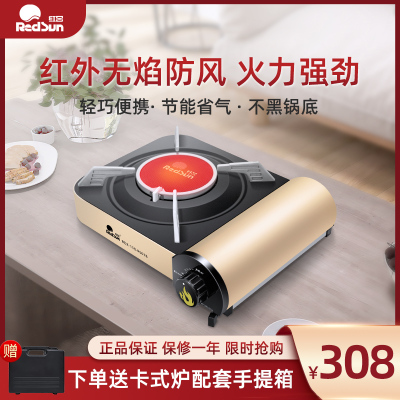 红日redsun红外线卡式炉 便携式户外防风防水炉具旅游型野炊燃气炉烧烤火锅瓦斯炉 RS018E(金色) 需自备丁烷气