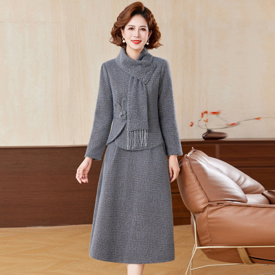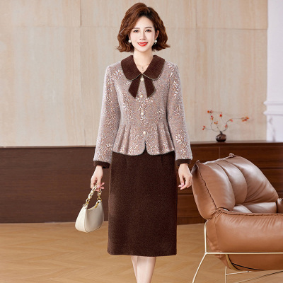 小香风妈妈冬装仿水貂绒连衣裙中老年阔太太秋冬款加厚裙子两件套