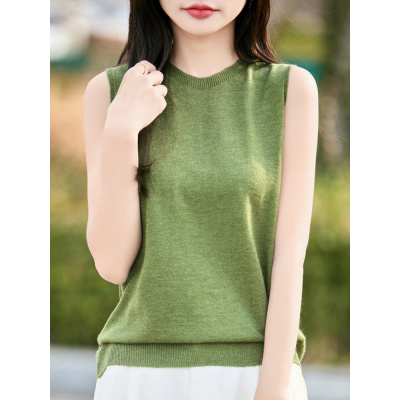 圆领无袖细羊毛背心女夏季吊带薄款内搭宽松针织外穿打底上衣T恤