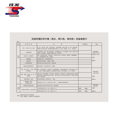 铁凇 无线列调区间中继(尾台、洞口机、洞内机)设备检修卡 297*210mm 张