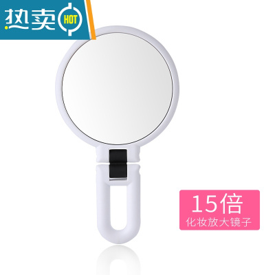 敬平双面15倍放大镜子化妆镜公主镜折叠便携镜手拿手持手柄镜随身可爱 白色 15倍放大便携式用镜