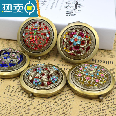 敬平化妆镜双面折叠便携化妆镜小号圆形镜子随身包包镜台式镜子放大镜 古铜色 图案随机不指定便携式用镜
