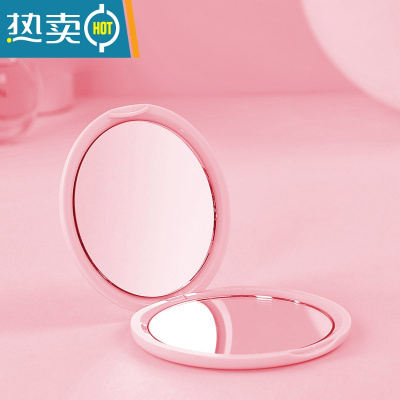 敬平旅行随身化妆镜便携式双面折叠小镜子迷你放大镜小巧化妆包高级感便携式用镜 双面化妆镜—粉色
