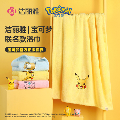 洁丽雅|宝可梦联名款浴巾3条 强吸水柔软家用女可爱吸水裹巾洗澡巾814-1