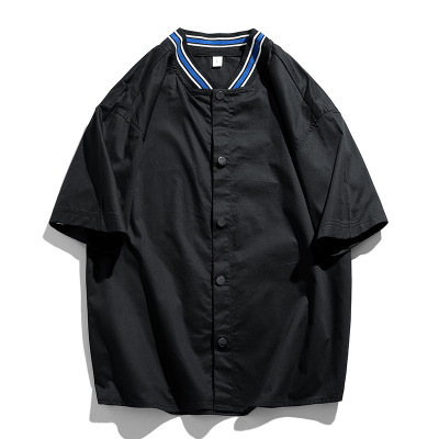 日系质感短袖衬衫男士2025春夏新款宽松潮牌ins风衬衣单排扣纯色
