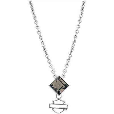 Harley Davidson女款黑冰水晶吊坠项链 精美手工设计 银质链条时尚首饰