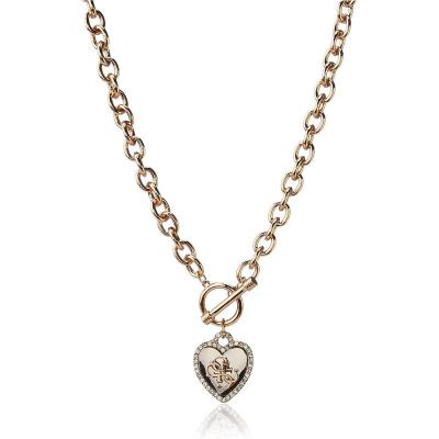 盖尔斯(GUESS)金属镶嵌水晶心形吊坠项链两 tone 设计时尚优雅女