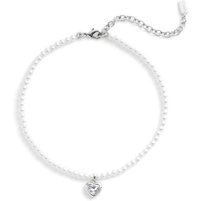 COACH精致珍珠链心形吊坠项链可调节爪扣女士时尚百搭配饰
