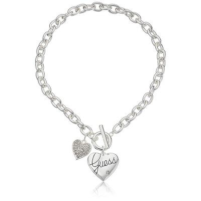 盖尔斯(GUESS)优雅心形吊坠项链闪耀时尚气息银质短链设计百搭