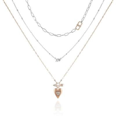 盖尔斯(GUESS)女款心形吊坠双层项链优雅金属与玻璃珠结合