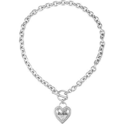 盖尔斯(GUESS)金属链条银色logo心形吊坠百搭日常精致女士项链