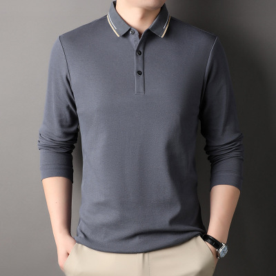纯棉长袖T恤男春季新款翻领纯色中年商务休闲吸汗透气男士polo衫