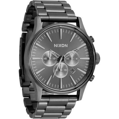 Nixon尼克松黑色不锈钢石英男子三眼计时码表时尚百搭欧美腕表