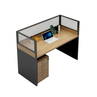 臻远办公桌职员办公室隔断屏风卡座 一字型单人位含柜