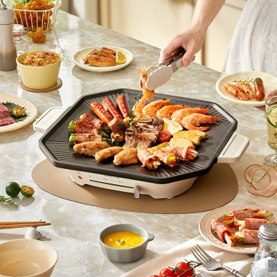 利仁(Liven) 电烤炉KL-j408煎烤盘电烤炉家用家庭烧烤无烟电烤盘双层电烧烤炉电煎盘烤串机无油不粘含小托盘